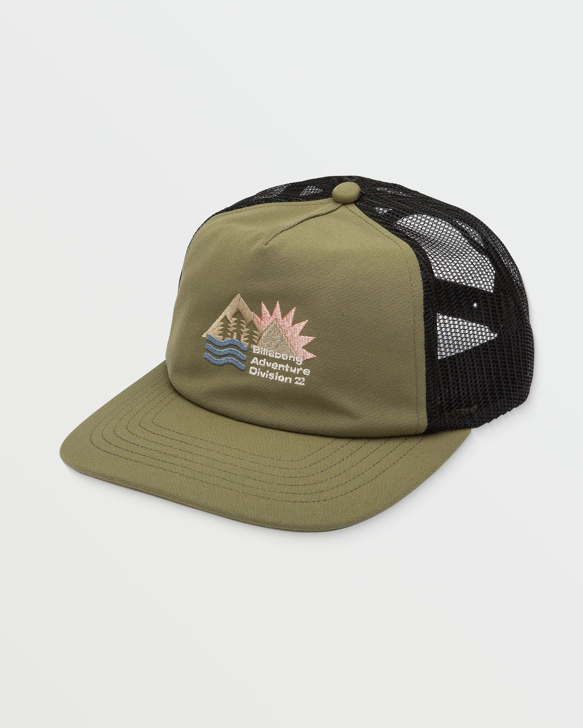 Stay cool and look fresh on your summer adventures with this breathable mesh trucker hat. The demi-curved brim and seasonal artwork print add trendy flair. while the adjustable snap closure ensures the perfect custom fit every time. Featured here in the Military colorway.