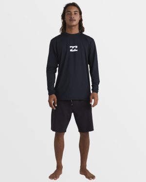 The All Day Wave Loose Fit Long Sleeve Surf Tee is a hybrid jersey rash guard. with a hooded neck and 50+ UV protection. Sun safe and comfortable. Featured here in the Black colorway.