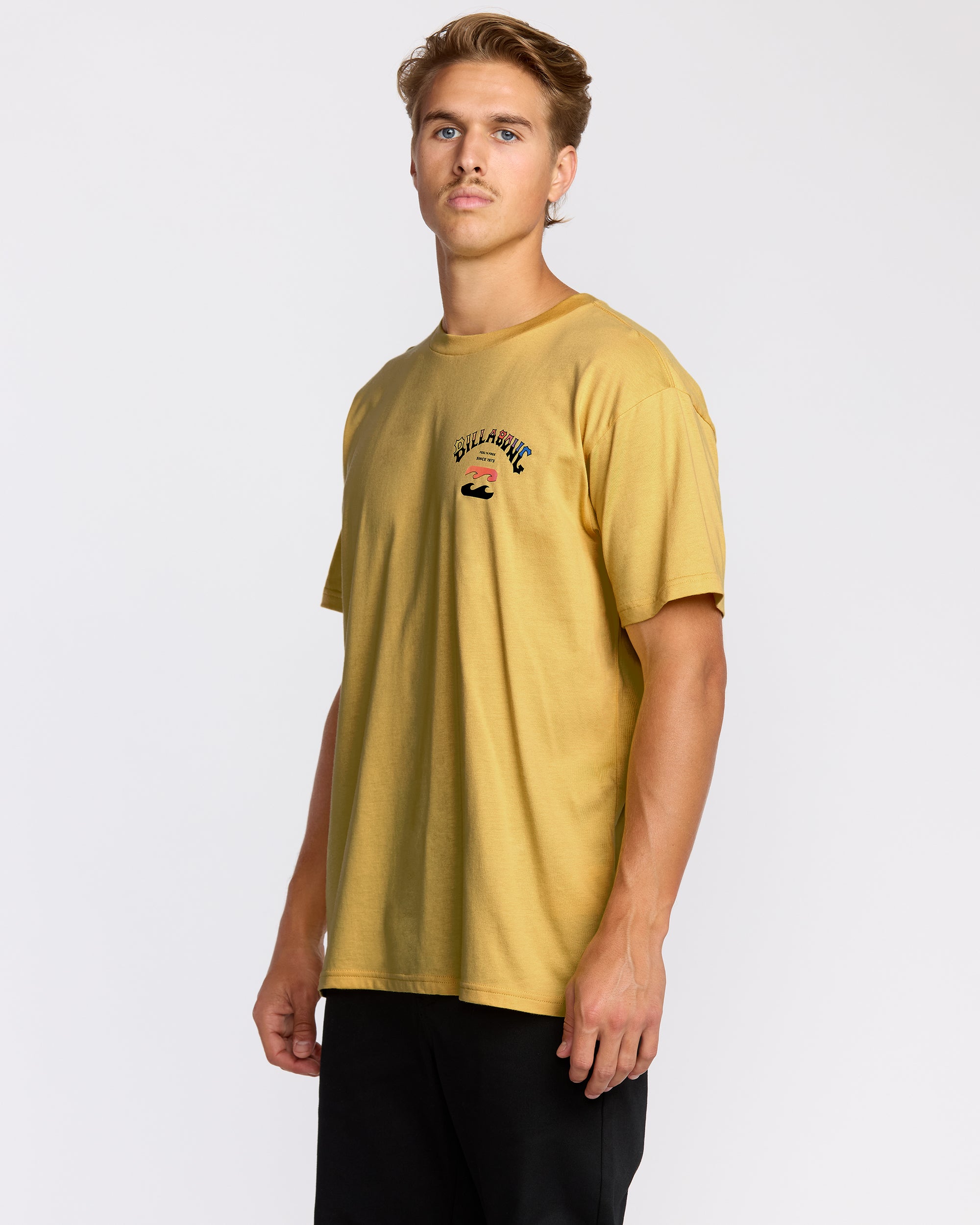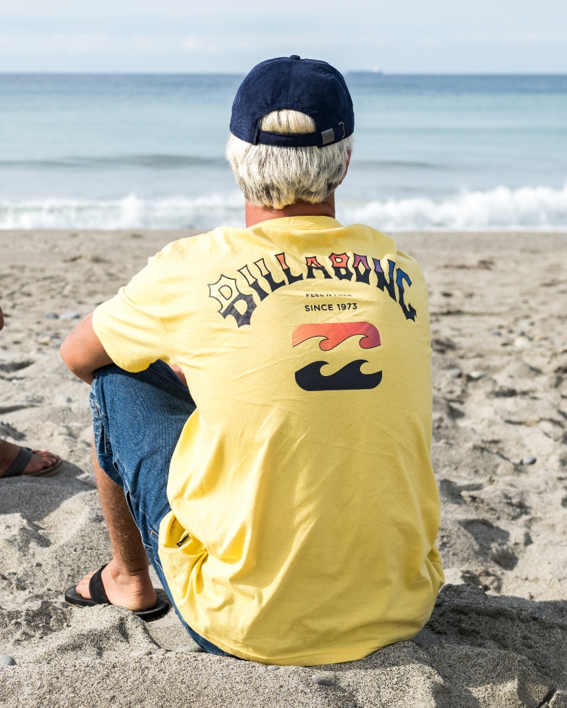 Our premium cotton t-shirt brings timeless style with front and back screen prints. The classic core fit and garment-washed softness make this lightweight jersey tee an everyday essential. Featured here in the Yellow colorway.