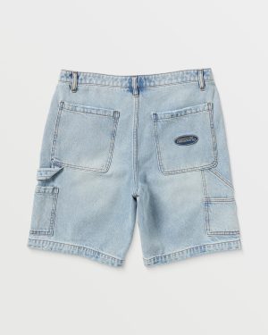 Sturdy yet laid-back. these 13.5 oz denim shorts feature a relaxed straight fit and classic 5-pocket jean styling with coin pocket. Signature Billabong branding on the side and back pocket in a medium indigo ocean wash. Featured here in the Bleached Aqua colorway.