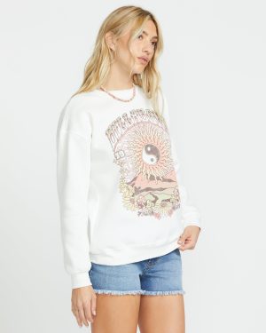 Laid-back Billabong beach style meets everyday comfort in this garment-dyed. washed crew. The relaxed cotton-poly fleece blend hugs you in softness. while the screen-printed design lends a signature surf look. Wear it for laid-back weekends or errand runs when cozy style is key. Featured here in the Salt Crystal colorway.
