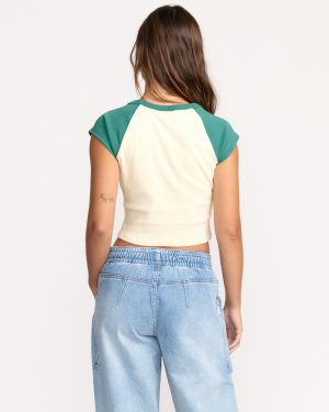 - Fitted raglan tee. Crew neckline