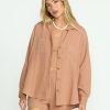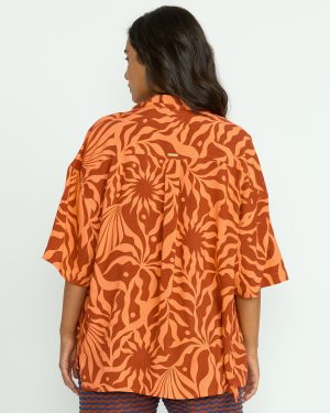 Kick back in our Billabong 100% cotton beach shirt. The oversized fit and short sleeves keep things breezy. while a button-down front and metal plate detail add a stylish touch. Perfect for relaxed days in the sun. Featured here in the Orange Squeeze colorway.