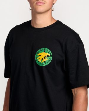 Our Billabong x Mami Wata collection celebrates surfing’s origin story in West Africa. This regular men’s tee features Black Star Surf Club graphic prints from the collection. screen printed front and back. Made from a soft. 100% ring spun cotton mid weight jersey with a relaxed fit. wider neckline and garment washed for all-day comfort.