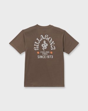 Our premium short sleeve t-shirt wraps you in ring spun cotton comfort with a lived-in. wave-washed feel. Signature screen prints front and back complete this buttery-soft essential for your daily rotation. Featured here in the Brown colorway.