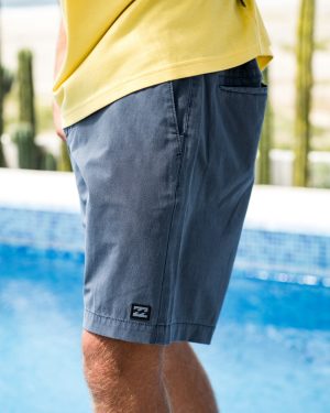 Versatile hybrid shorts with 4-way stretch cotton poly fabric move seamlessly from waves to street. Garment dyed with DWR. they feature a relaxed chino style. zipper pockets and button fly – perfect for active guys seeking modern amphibious style. Featured here in the Midnight Blue colorway.