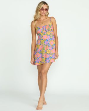 Our Dreaming Of Sun Dress in lightweight. breathable viscose with a floral print is the ultimate warm-weather essential. This regular-fit mini dress features a square neckline. spaghetti straps. and sweet self-tie detail at the waist.