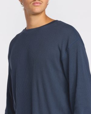 Our cotton-blend thermal top wraps you in cozy comfort with its soft waffle knit texture. The regular fit and softener-treated fabric make it perfect for layering or wearing solo. Featured here in the Blue colorway.