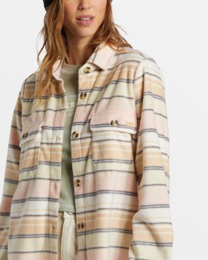 Billabong’s Forge Fleece Shaket from the Adventure Division Collection combines comfort. warmth. and style suited for the great outdoors. Crafted from partially recycled polyester fabric for a cozy. fleece feel. this oversized sweater-jacket offers a relaxed fit with a collar neck. chest flap pockets. and front buttons. Topped with a durable. water-repellent finish to keep you warm and dry. Featured here in the Mountain Rose colorway.