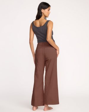 Our cotton-rich corduroy pants combine a flattering high waist and slim fit through the hips with a fashionable wide leg. Practical back pockets and a classic button fly complete this versatile style. Featured here in the Brown colorway.