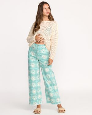 Our Free Fall Printed Twill Pants boast a billowy wide leg silhouette that dances with every step. With a cropped length and raw. frayed hem. this high-rise twill pair infuses any look with effortless. on-the-go style.