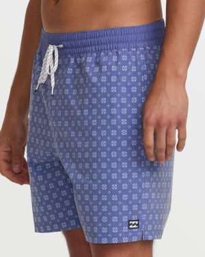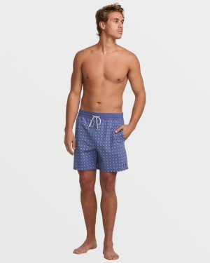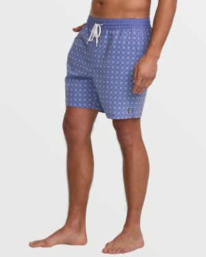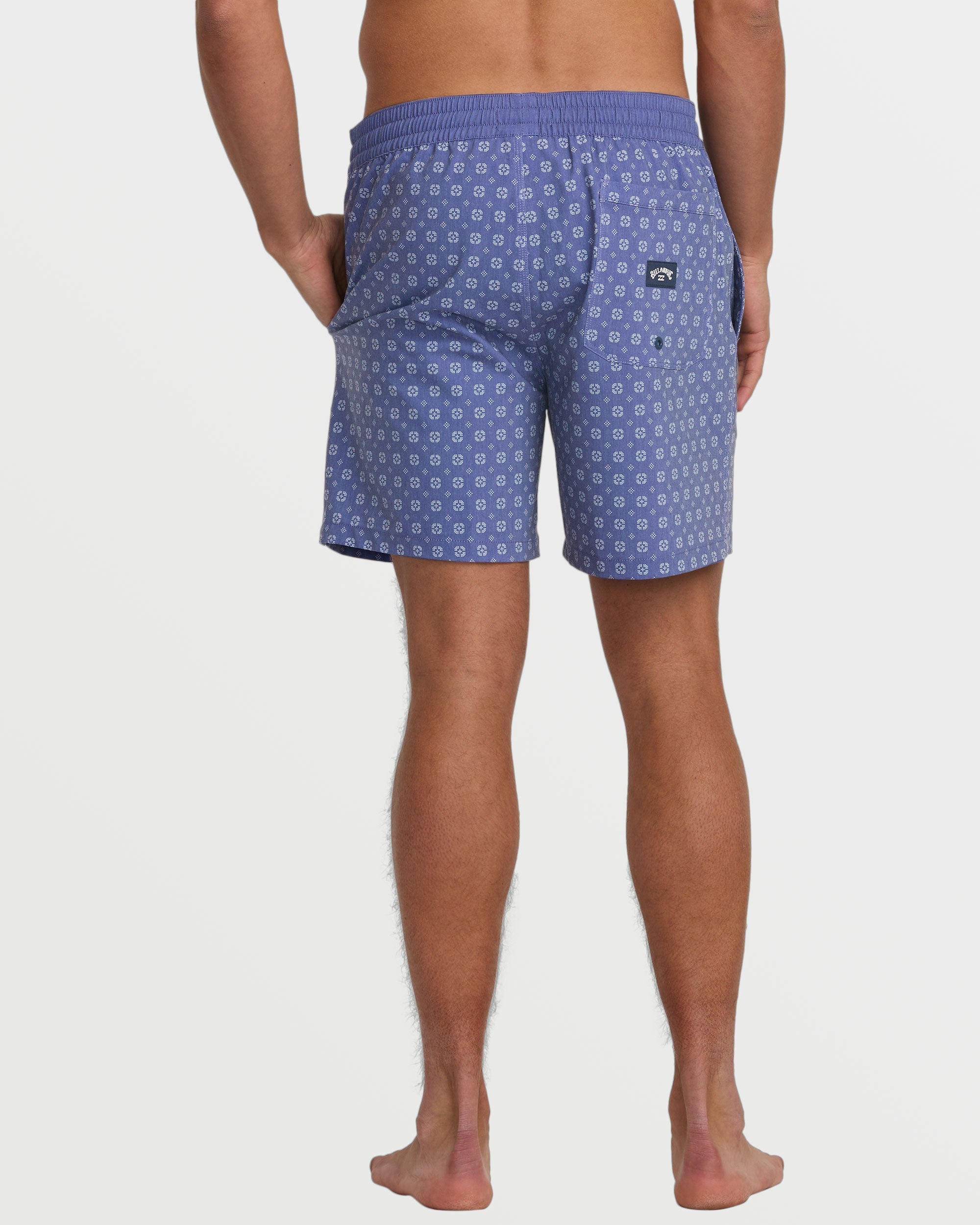 Our comfy layback trunks keep things easy with a 16-inch length and elastic waist. Pro stretch fabric moves with you. while side and back pockets hold essentials for spontaneous summer adventures. Featured here in the Blue colorway.