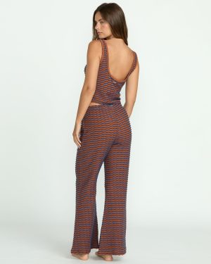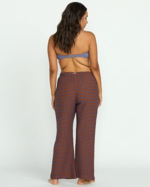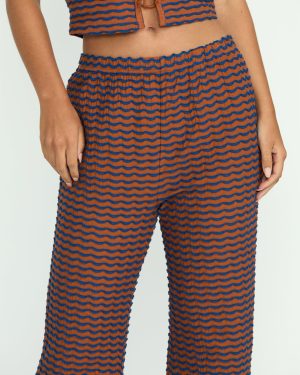 Enhance your wardrobe rotation with these flattering. fitted. high-waist pants with a slight flare leg. Crafted from a textured jacquard knit with a wavy pattern. these pants seamlessly blend throw-on comfort with an elastic waist. and sophisticated style in an earthy palette. Coordinate with the matching Hot Tides top or mix it up.
