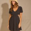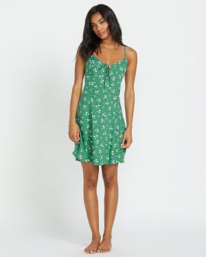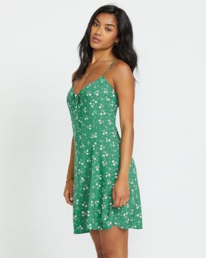 Steal a kiss from the tropics in this dreamy island mini slip dress. Our Billabong body-skimming viscose number flaunts a plunging v-neck with a flirty self-tie detail. Back zipper closure keeps it sweet-and breezy for warm destination nights. Featured here in the Island Green colorway.