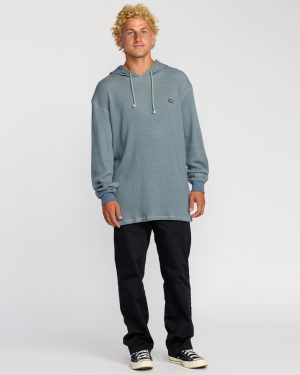 The Keystone Hoodie by Billabong is the perfect blend of comfort and style. Crafted from a cotton polyester waffle knit thermal blend fabric. this hoodie features a pullover closure. rib cuffs and hem. as well as arch logo branding on the chest. Featured here in the Slate Blue colorway.