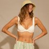 Our partially recycled Morning Swell Helena Underwire Bikini Top sculpts a flattering look with underwire support. adjustable straps and darts at the bust. Light texture and subtly embroidered branding add a signature touch to this stylish women’s bikini top.