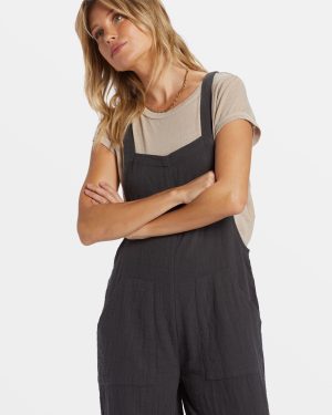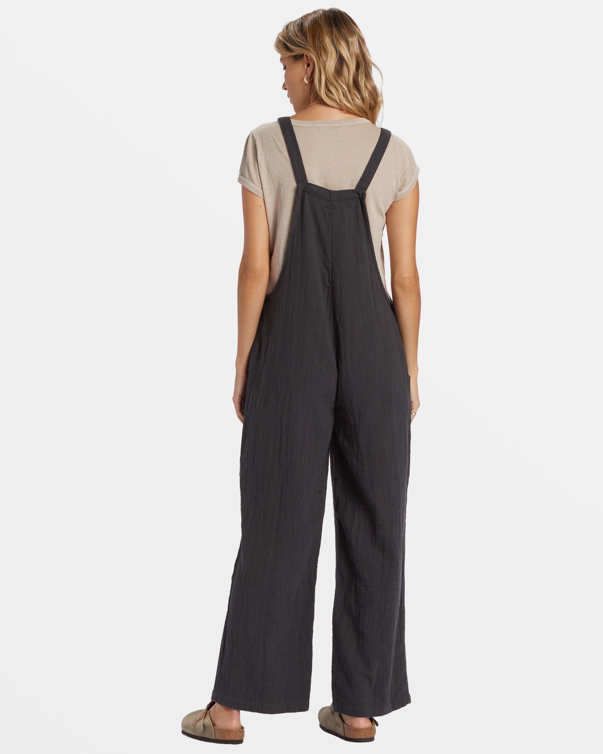 Effortless meets eye-catching in this 100% cotton jumpsuit. Embrace warm weather in breathable. double slub gauze with a relaxed fit. adjustable straps. and front pockets. Metal plate detail punctuates this one-piece stunner. Featured here in the Black Sands colorway.