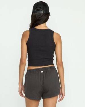 The Rerun knit tank from our Billabong Women’s collection. This fitted scoop neck silhouette combines 94% Cotton 6% Elastane Rib fabric with a metallic logo plate for versatile style that moves seamlessly. Featured here in the Black Sands colorway.