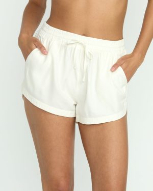 Relaxed cotton/viscose twill shorts with elastic waist and drawcord. Regular fit with side pockets. Breathable and soft for casual days. travel or beach. Featured here in the Salt Crystal colorway.