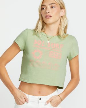 Breezy cotton jersey. a perfectly imperfect pigment-dyed wash. and a casual cropped fit: this delight tee brings an effortlessly cool California look to your warm weather style. A classic crew neckline and relaxed silhouette keep the vibe easy. while the bold screen print adds a touch of personality. Featured here in the Pistachio colorway.