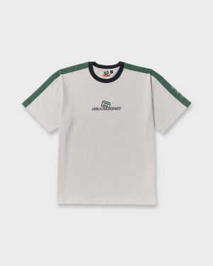 Our throwback tee brings classic comfort with a generous cut. wider shoulders and longer sleeves. Distinctive contrast panels and signature logo prints on chest and sleeve create that coveted vintage vibe. Featured here in the Gray colorway.