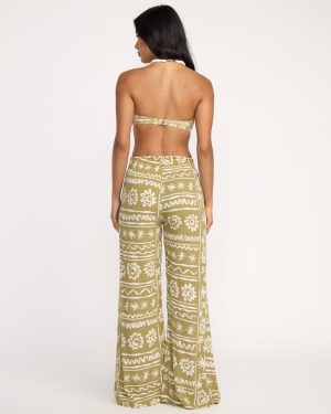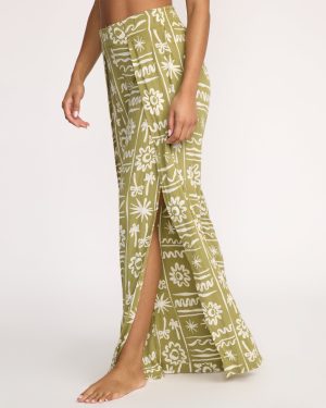Split Spirit Elastic Waist Pants – Green Tea