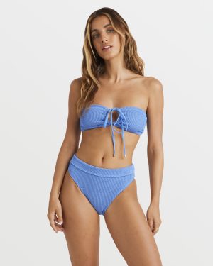 Cruise into summer with this partially recycled blend. high-waisted bikini bottom sporting a textured. sun-soaked look and a signature metal plate. Medium coverage. endless style. Featured here in the Ultra Marine colorway.