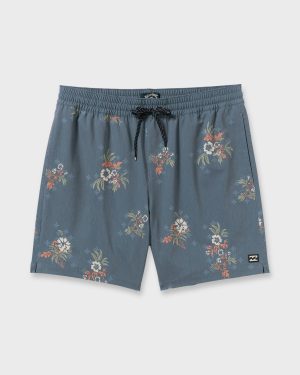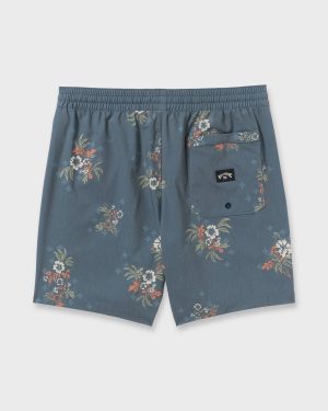 Our Billabong Sundays Layback Trunks offer casual style with a relaxed 17 fit in stretchy poly cotton. Back and side pockets provide convenience. while the elastic waist allows easy movement. Finished with a branded woven label. Featured here in the Steel Blue colorway.