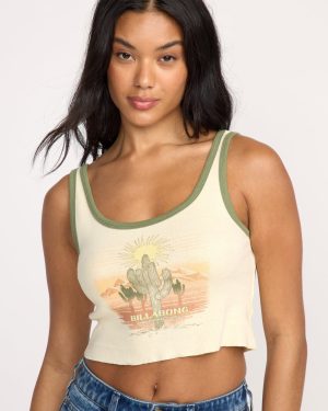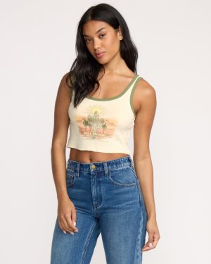 A sun-ready essential in soft cotton rib. our snug-fitting tank hugs in all the right places. The scoop neck and screen print details add laid-back style to your warm-weather wardrobe. Featured here in the Yellow colorway.