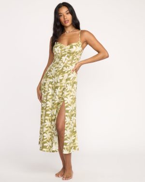 Our body-skimming midi dress brings romance with its sweetheart neckline and graceful front slit. The smocked back bodice ensures a perfect fit. while soft viscose fabric keeps you comfortable all day. Featured here in the Green colorway.