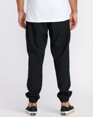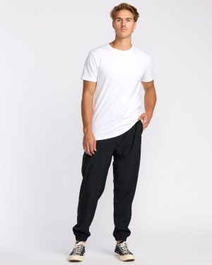 Our Surftrek Transit Joggers blend recycled polyester with cotton for breathable mens pants ready for urban adventures. Elastic waist. tapered legs. and utility pockets deliver casual comfort and convenience. Featured here in the Black colorway.