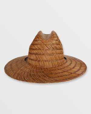 Made of seagrass straw with a wide brim and structured design. the Tides Lifeguard Hat is the ultimate beach accessory. Adding a woven front patch for extra style points. this men’s sun hat is secured with an adjustable chin toggle. Featured here in the Brown colorway.