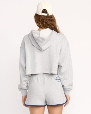 Our cotton-blend fleece hoodie brings cozy comfort with street-smart style. The oversized. cropped fit pairs perfectly with high-waisted bottoms. while raw edges and embroidered palm details add laid-back charm. Featured here in the Gray colorway.